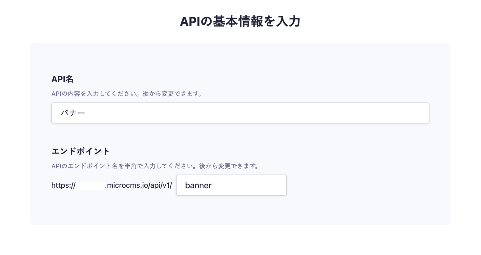 microCMS上でバナー管理用のコンテンツAPIを新しく作成します。