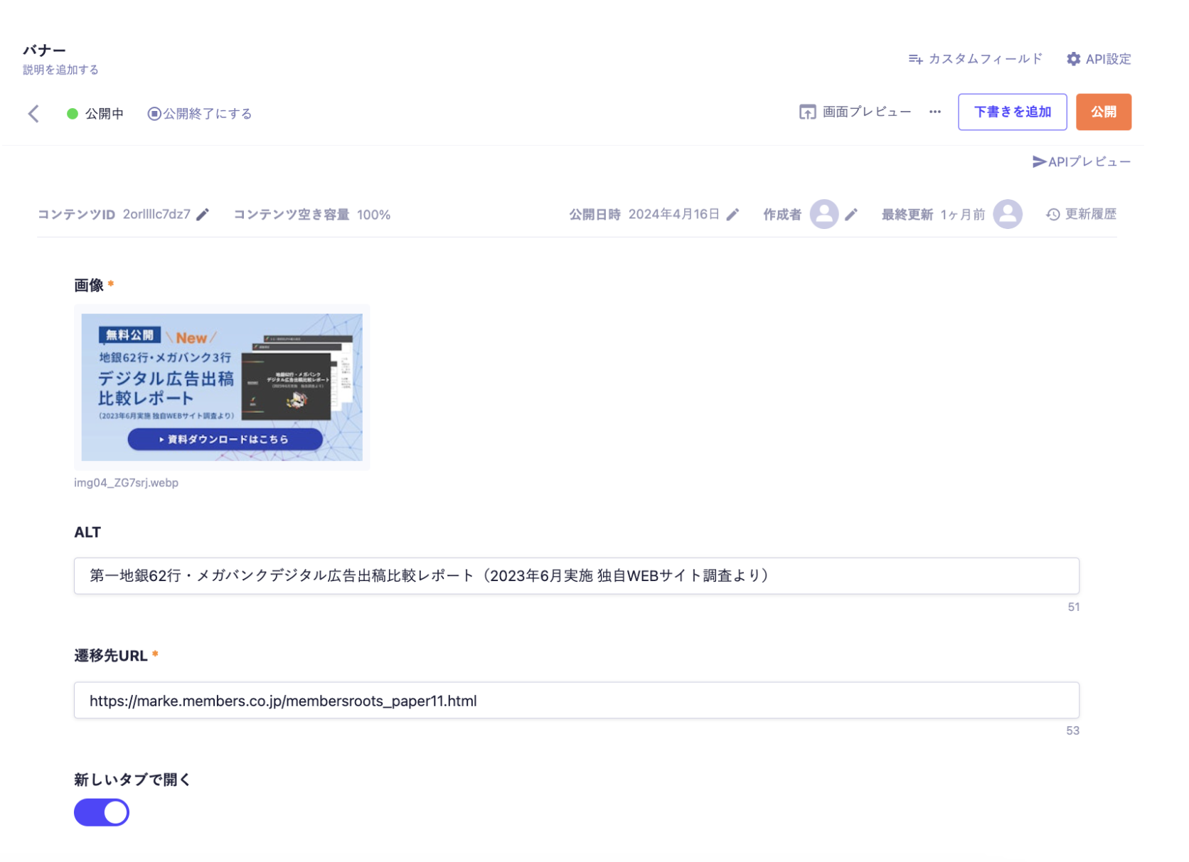 microCMSにバナー管理用のコンテンツAPIの作成