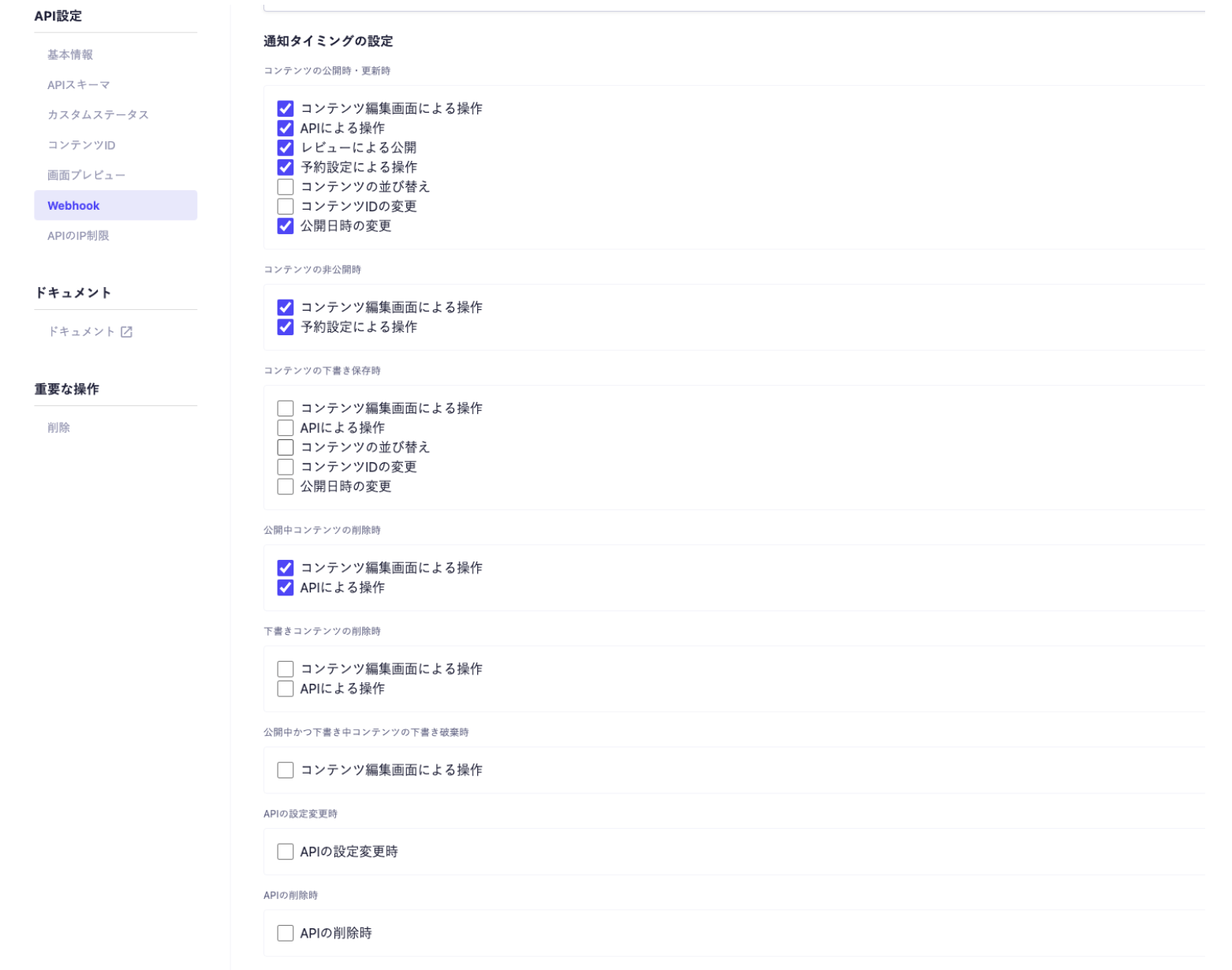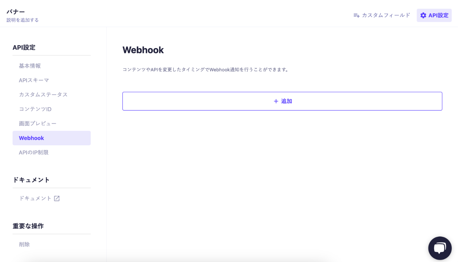 microCMSに移動し、作成したバナーのAPI設定からWebook設定で設定します。