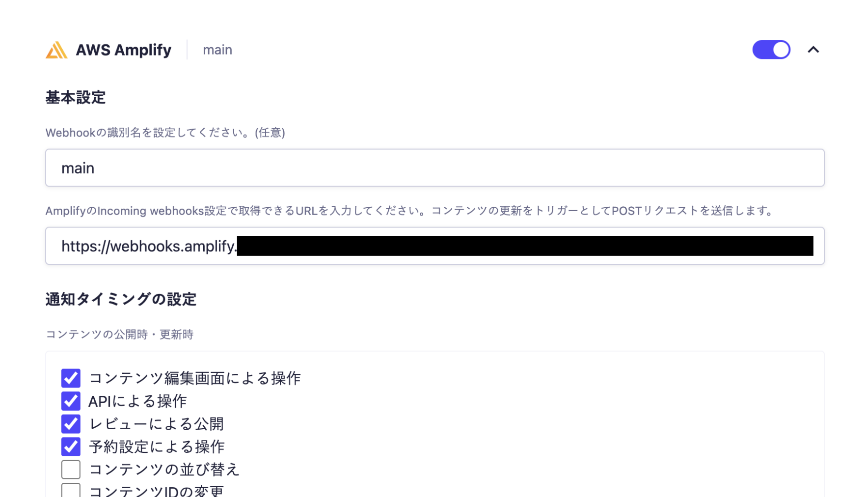 HPをAWS Amplifyでホスティングしているため、microCMSでバナーを更新するたびにAWS AmplifyのWebhookに通知を送ってもらいます。