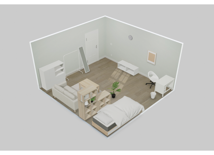 こちらのフィードバックでは、北欧感と作業机を取り入れた部屋にして欲しいと依頼しました。
