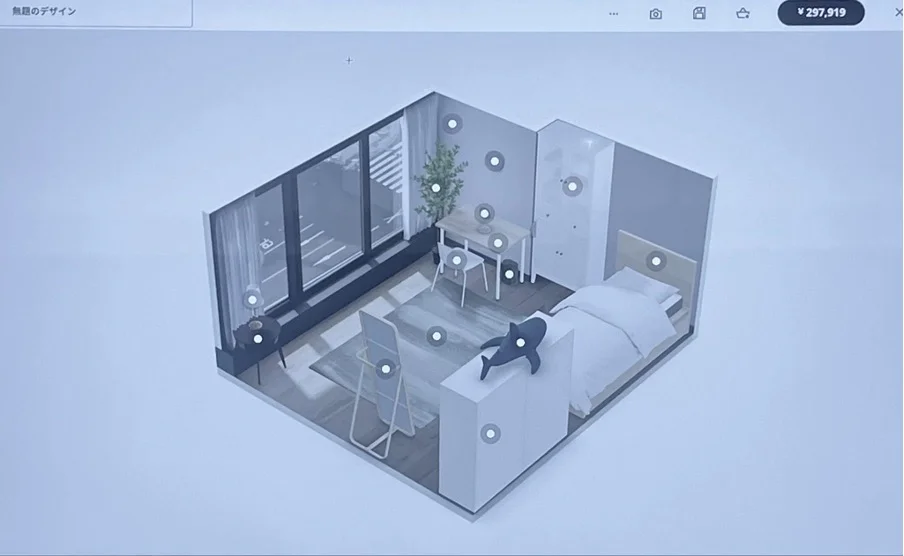 初回のヒアリングを受けた際、部屋のテイストを「北欧テイスト」にしたいという要望があり、それに基づいて北欧家具で有名なIKEAのシュミレーター”IKEA Kreativ/IKEAクリアティーヴ”を使用して作成していただきました。