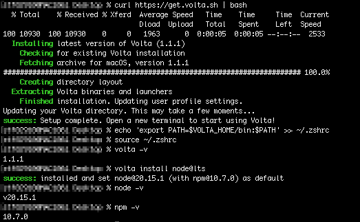 echo 'export PATH=$VOLTA_HOME/bin:$PATH' >> ~/.zshrc