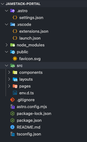 今回はプロジェクトディレクトリ名を「jamstack-portal」としました。