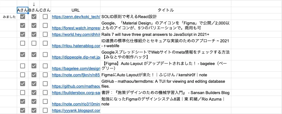 朝会/夕会の時間に、↑で作成したシートから各自が気になった記事を一つ読みます