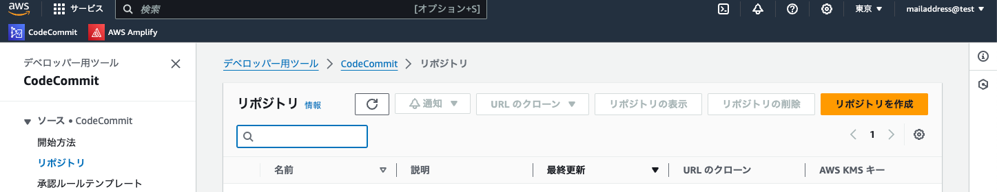 1.AWS CodeCommitのリポジトリ画面へアクセス
