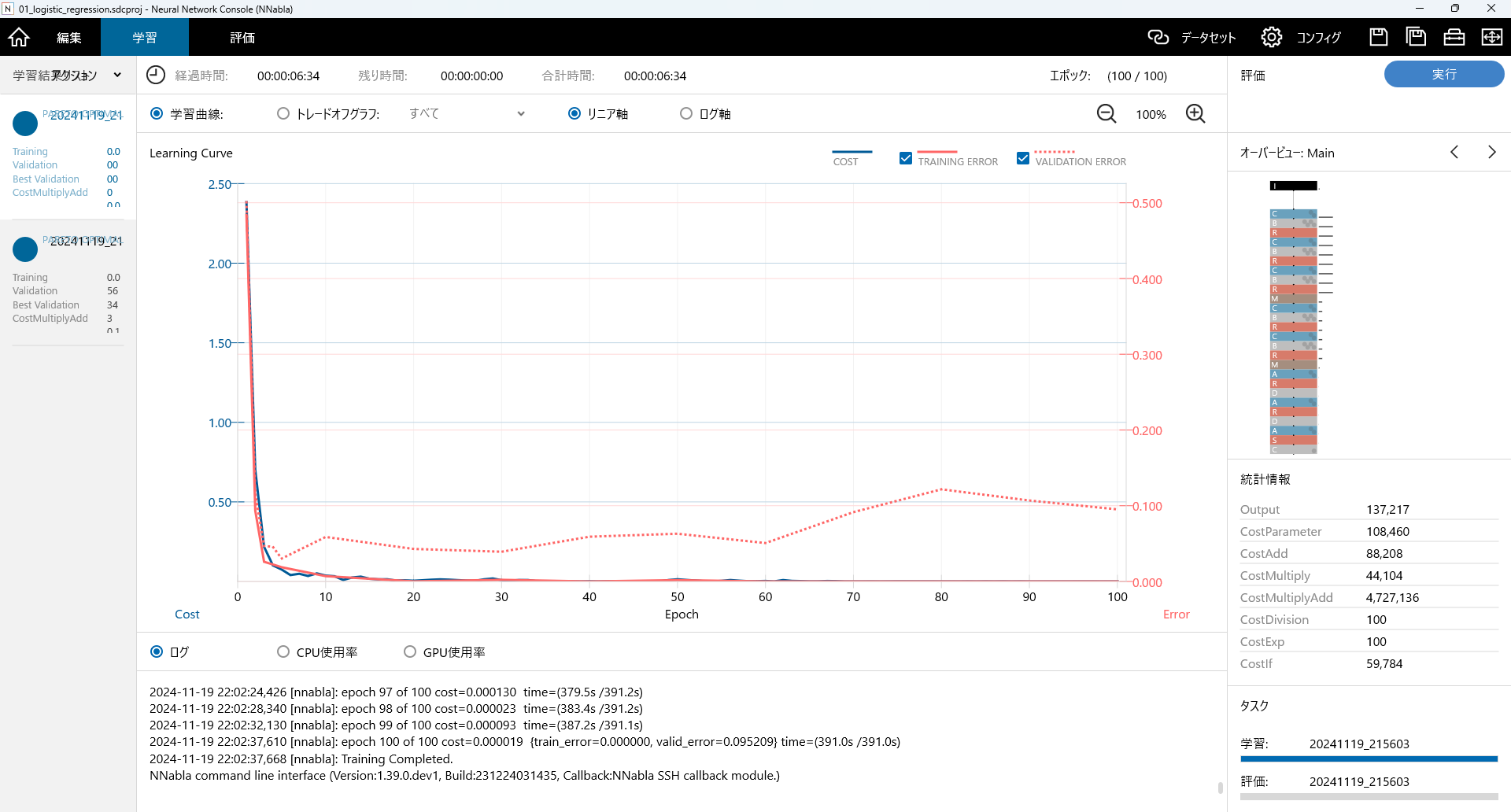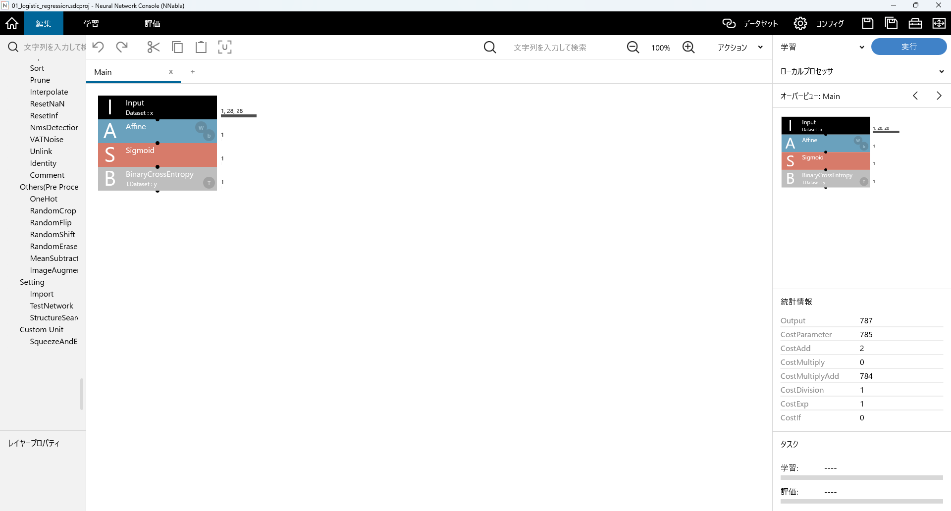 今回はサンプルの01_logstic_regression.sdcprojを開きます。こちらは開くと自動でデータセットもダウンロードできるので簡単に学習を行うことが可能です。