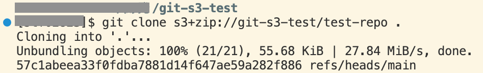 git clone s3+zip://git-s3-test/test-repo無事クローンすることができました。S3がGitリモートリポジトリとして機能していそうです。