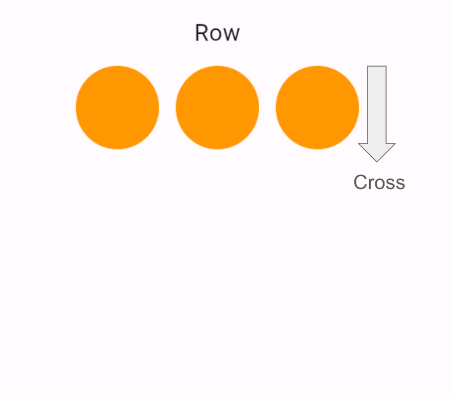 Crossがキーワードになります。CrossAxisAligmentとは子Widgetの軸の並び方向ではない配置のことです。