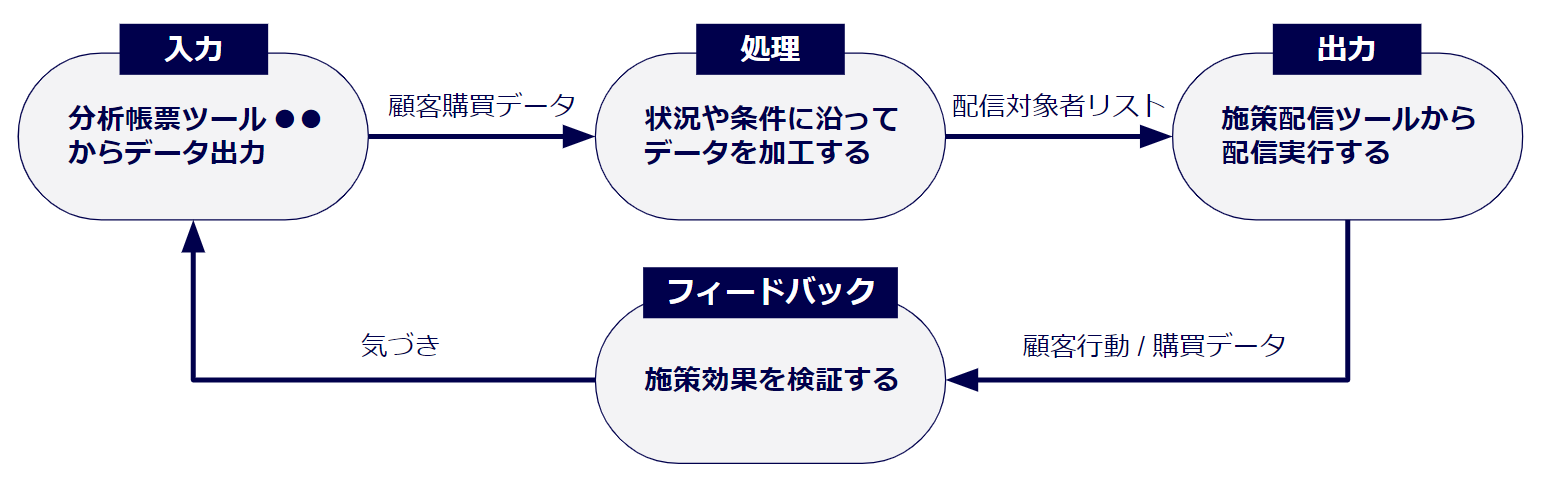 入力 → 処理 → 出力 → フィードバック(ループ構造)