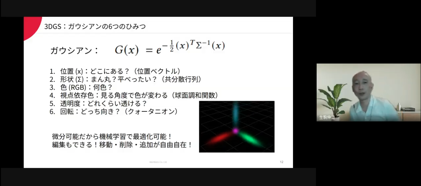 生駒さんの解説では、従来の3D化技術が抱えていた課題と、それをどう3DGSが打破しているかが明快に語られました。