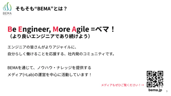 私たちBEMAも「より良いエンジニアであり続けよう」を合言葉に、エンジニア同士の交流を大事にしています。今回の「まず運営が楽しむ」という考え方は、まさにBEMAが大切にしてきたことと重なっていて、とても共感しました。