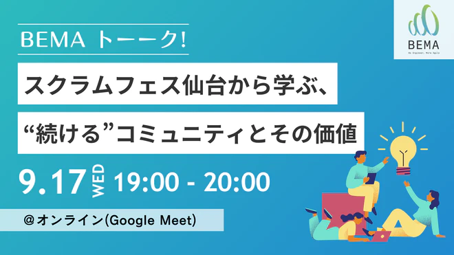 2025年9月17日、スクラムをテーマにしたコミュニティ「すくすくスクラム」と、BEMAで共催イベントを開催しました。テーマは「スクラムフェス仙台から学ぶ、続けるコミュニティとその価値」。