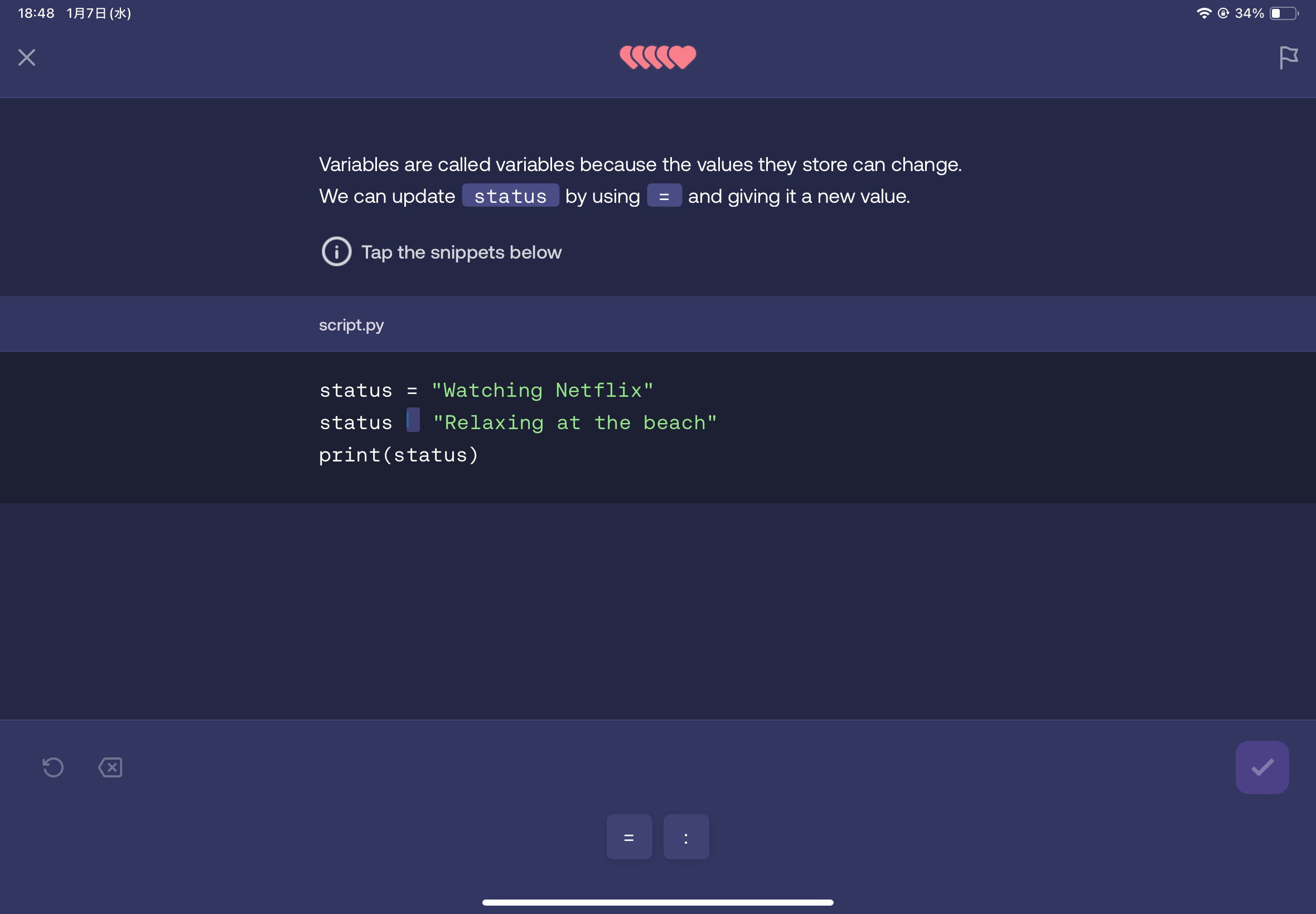 Duolingoのように「連続学習記録(Streak)」や「ランキング機能」があります。また、問題を間違えるとライフが削れます(最大5個)。1レッスンが短いため、忙しい人でも「今日だけはやっておこう」という気持ちになりやすく、自然と学習が習慣化します。