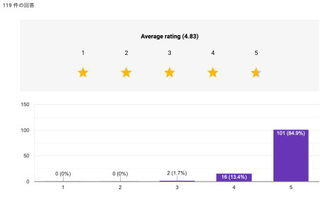 アンケートの結果、満足度が4.83という驚異的な数字になりました!