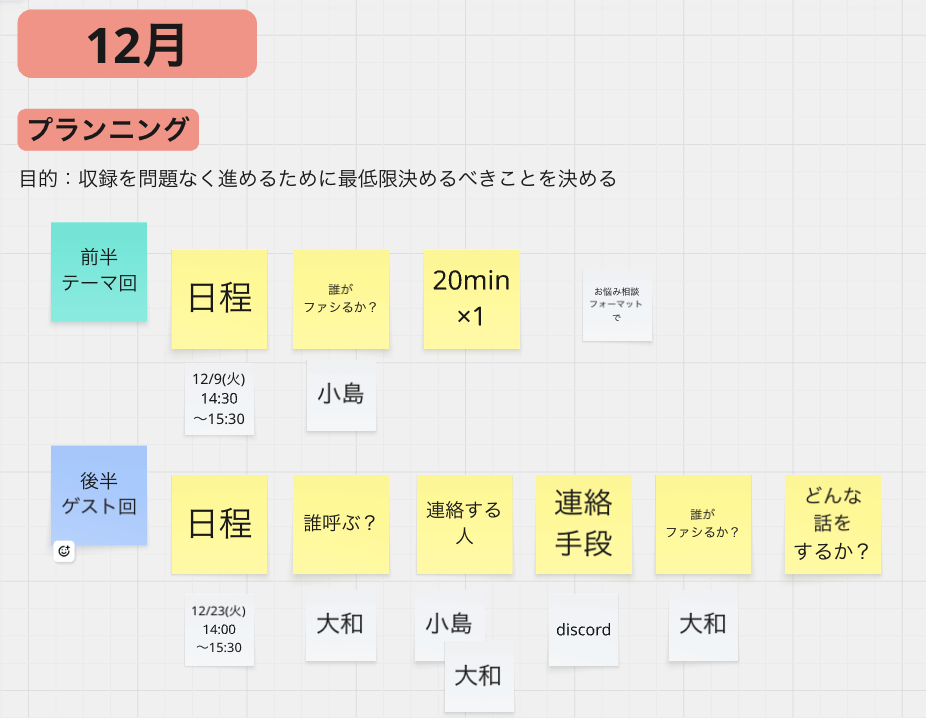 収録自体はGoogle Meetを使ったシンプルなものですが、運営の進め方はとても計画的で、配信活動にもスクラムの考え方が取り入れられています。