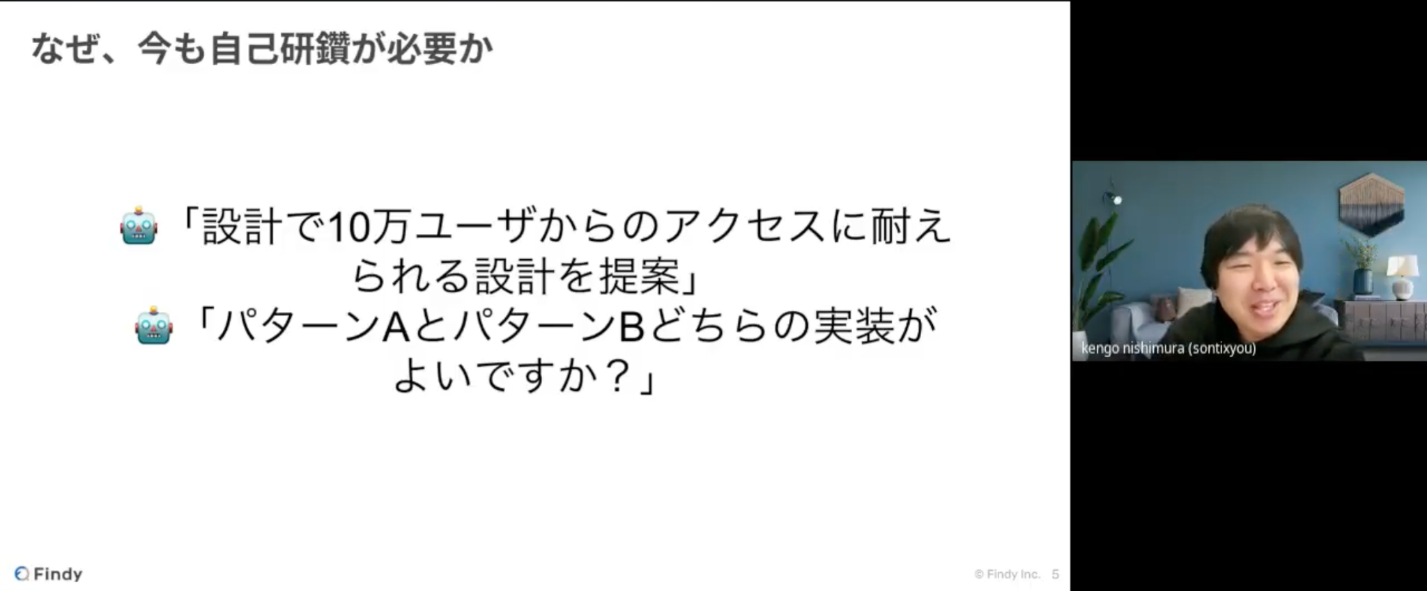 2つ目のLTは、ファインディ株式会社 西村 憲悟さんの発表です。マルチスタックエンジニアとしてプロダクト開発に従事されています。