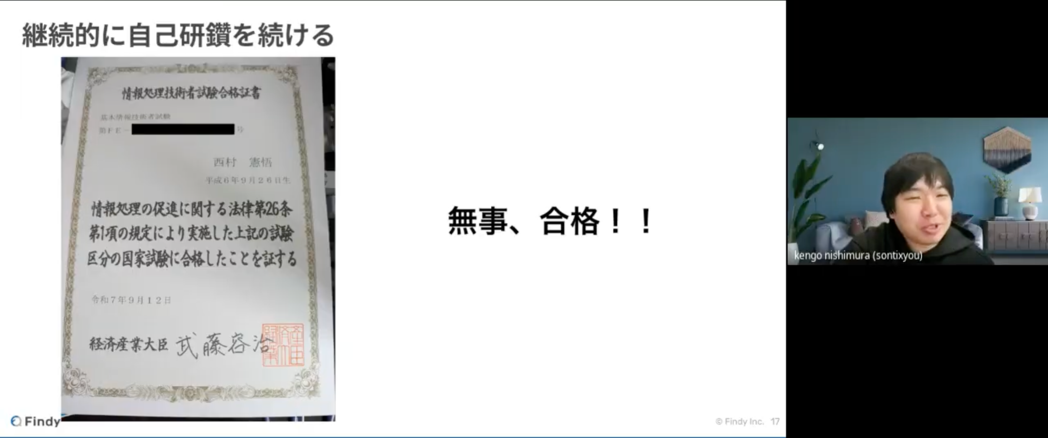 上記の仕組み作りにより、西村さんは目標としていた基本情報技術者試験に合格されました!