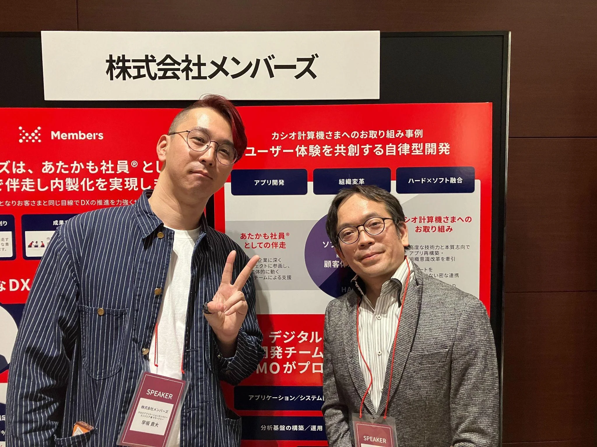 今回は現在も支援を続けている当社の顧客のリプレックス株式会社(カシオ計算機株式会社のグループ企業)代表取締役、大中 邦彦氏と共同登壇という形で、「内製開発を成功に導くための共創型支援の実例」をテーマに講演を行いました。