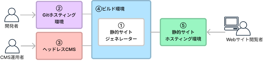 Jamstackの基本的な構成要素は以下のとおりです。
