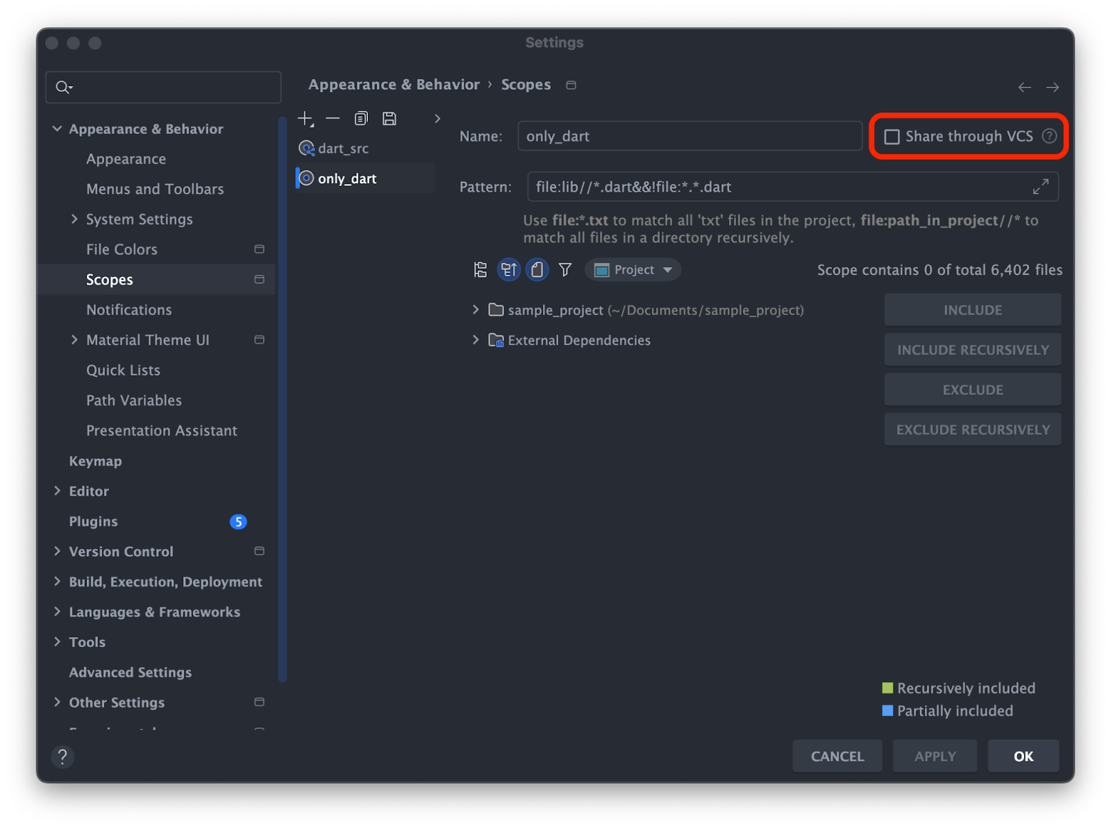 Dartファイルを絞り込むScope作成手順